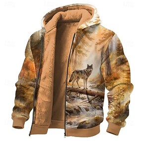 Homme Loup Impression 3D Polaire Sweat à capuche Veste Sweatshirt Classique Militaire Chasse Col ras du cou Extérieur Camping Marron Marron 2 Marron 3 Zip Up Automne Hiver Designer S M L XL 2XL 3XL