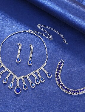 Parure de bijoux 3 Chrome 1 Collier 1 Bracelet Boucles d'oreilles Femmes Mode Parure de Bijoux Pour Soirée