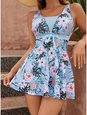 Maillot de bain femme une pièce robe shorts contrôle du ventre taille haute slim dos nu vacances plage graphique en U sans manches