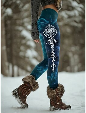 Femmes Viking Leggings Leggings confortables Vacances ancien Style Ethnique Longueur complète Taille haute Graphique Impression Confortable Élastique Occasionnel Quotidien Vacances Bleu Printemps
