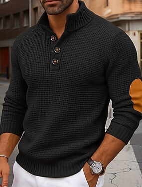 Homme Pull Chandail Pull A côtes Tricot torsadé Tricoter Découpé Bouton Couleur unie Col Henley Moderne contemporain Casual Vêtement Tenue Hiver Bleu Kaki M L XL