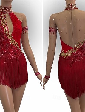 Robe de patinage artistique pour femmes et filles, robe de patinage sur glace rose rouge, extensible, entraînement, compétition, vêtements de patinage, thermique, chaud, cristal/strass, sans manches,