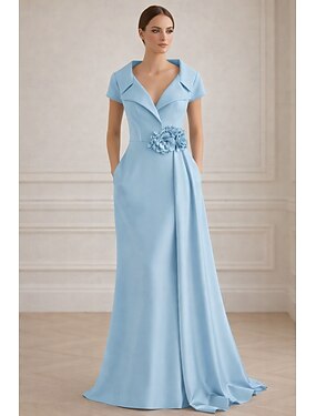 Fourreau Colonne Longueur cheville Robes de Cocktail Robes de soirée Élégant Mère Fente latérale Manche Courte Col ras du cou Mariage Formel Crêpe Extensible avec Fleur d'Épaule