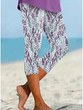 Femmes Chinos Leggings Vacances Streetwear Occasionnel Capris Taille haute Fleuri Graphique Impression Confort Doux Confortable Élastique Quotidien Extérieur Vacances Violet Été Printemps Automne