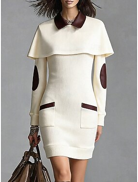 Femmes Mini Robe Robe Pull Robe fourreau Élégant Mode Moderne Quotidien Extérieur Vacances Coupe régulière Bloc de Couleur manche longue Col de chemise Beige Automne Hiver