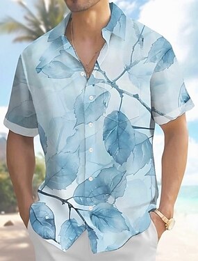 Homme Plantes Feuille tropicale Chemise hawaïenne Chemise Boutonnée Chemise Aloha Manche Courte Hawaïen Fête Tenue de plage Été Printemps Col Rabattu Impression 3D chemises à col Une poche avant Bleu