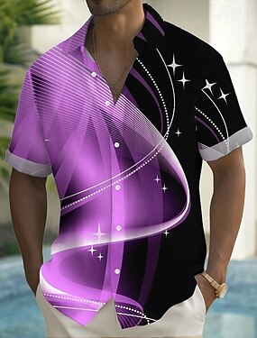 Homme Géométrique Vagues Couleur éblouissante Chemise Chemise Décontractée Chemise Boutonnée Manche Courte Mode Décontractée Extérieur Vacances Tenue Quotidienne Été Printemps Col Rabattu Impression