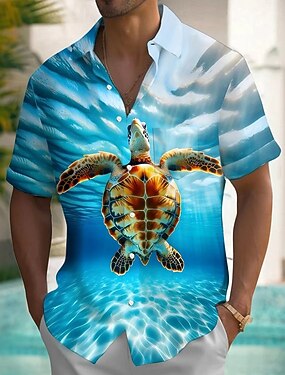 Homme Tortues Créatures de la mer Chemise Chemise hawaïenne Chemise Boutonnée Manche Courte Hawaïen Vacances Fête Tenue de plage Été Printemps Col Rabattu Impression 3D chemises à col Bleu