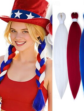 Extensions de cheveux tressés colorées, rouge, blanc et bleu, extensions synthétiques jumbo au crochet pour femmes et filles, tresses box twist, coiffures tressées au crochet, cosplay, 4 juillet, fête