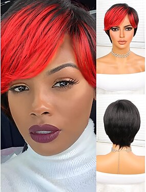 Perruque Synthétique Droite naturelle Bob court Partie latérale Perruque 8 pouces Noir / Rouge Cheveux Synthétiques Femme Couleur mixte