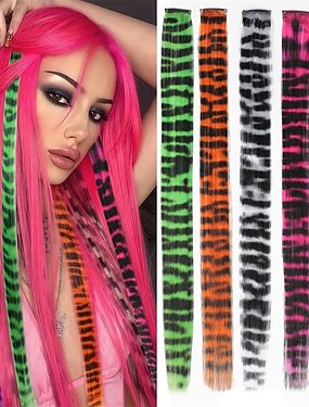 Lot de 5 extensions à clips imprimé léopard, 45 cm, cheveux synthétiques lisses, rayures, accessoires de coiffure colorés pour femmes