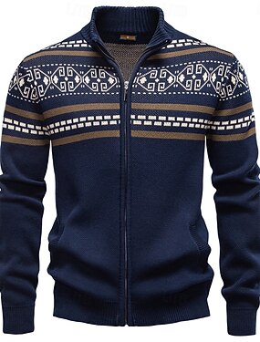 Homme Gilet Cardigan Pull Fair Isle Tricoter Hauts Réguliers Zip Up Géométrique Col roulé Noël Gilet Vacances Occasionnel Vêtement Tenue Printemps Automne bleu marine Kaki S M L