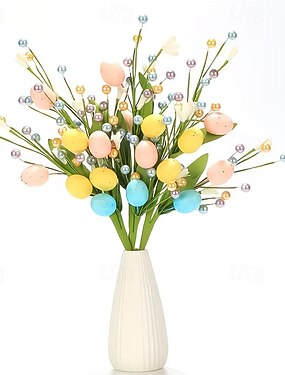 Lot de 3 tiges d'œufs de Pâques avec œufs tachetés &Perles, fleurs artificielles printanières pour garnir les vases, guirlande décorative à faire soi-même, centre de table style ferme, décoration pour