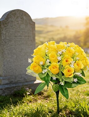 Fleurs artificielles pour cimetière, roses raffinées, composition florale pour pierre tombale, idéale pour les funérailles, les cimetières et pour exprimer ses condoléances et faire ses adieux aux