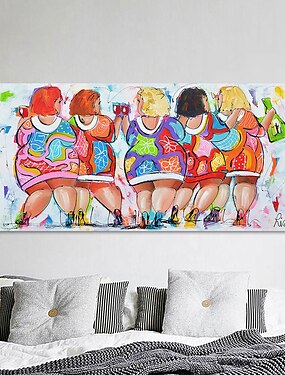Peinture à l'huile faite à la main toile art mural décoration personnages de dessins animés modernes 5 grosses filles pour la décoration intérieure roulé sans cadre peinture non étirée