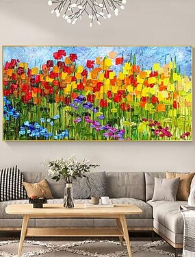 Peinture à l'huile faite à la main toile mur art décoration 3d couteau à palette fleurs tulipe fleur paysage de mer pour la décoration intérieure roulé sans cadre peinture non étirée