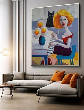 Peinture à l'huile faite à la main sur toile, décoration murale, paysage architectural, personnages de dessins animés, pour la décoration intérieure, cadre tendu, peinture suspendue/enroulée, sans
