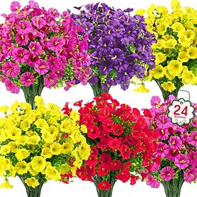 24 bouquets de fleurs artificielles d'extérieur résistantes aux UV, fleurs printanières artificielles pour jardinières d'extérieur, décoration de mariage, maison, jardin, patio, porche (8 couleurs)