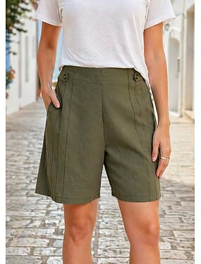 Femmes Bermuda Coton et lin Vacances Basique Décontracté Quotidien Court Taille haute Confort Non Elastique Quotidien Frêne Noir Blanche Vert Été Printemps Coupe régulière