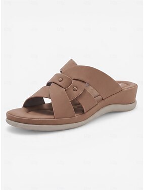 Sandales à enfiler marron pour femme avec soutien de la voûte plantaire – pantoufles souples à brides croisées, sandales confortables et légères avec coussinets, idéales pour l'intérieur, l'extérieur,