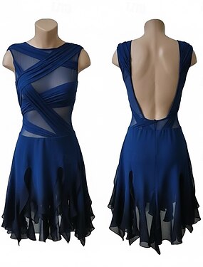 Robe de patinage artistique Femmes Patinage Robe Bleu marine Patchwork Dos Nu Haute Élasticité Entraînement Compétition Tenue de Patinage Classique cristal pailleté Sans manches Patinage sur glace