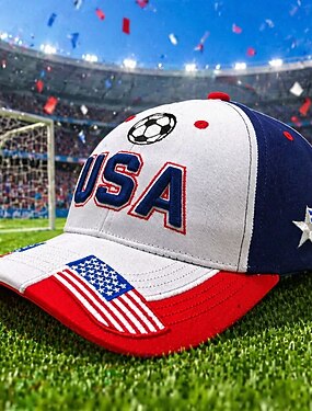 Casquette de baseball brodée drapeau américain Coupe du Monde de football 2026, casquette de sport ajustable en coton, fermeture snapback rouge, blanche et bleue patriotique pour hommes et femmes,
