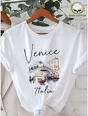 Femmes 100% Coton T-shirt Imprimé Fleuri Graphique Lettre ancien Élégant Classique Manche Courte Col ras du cou Hauts Longs Occasionnel Quotidien Week-end Blanche Été Printemps