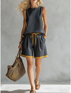 Femmes Ensembles deux pièces Sans manches Col rond Quotidien Bleu Vin bleu marine Été Coupe régulière