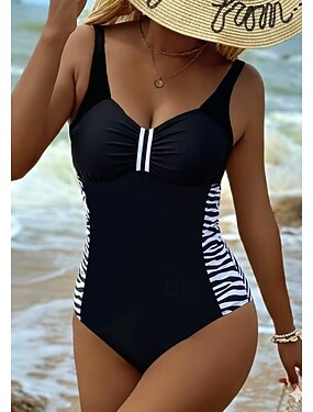 Maillot de bain une pièce pour femmes amincissant colorblock culottes vêtements de plage d'été graphique rayé col en U sans manches