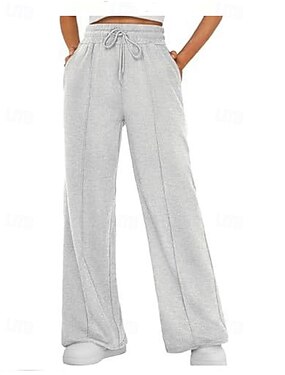 Femmes Actif Jambe large Chinos Vacances Streetwear Occasionnel Longueur complète Taille moyenne Uni Cordon de serrage Avec Poches Taille Élastique Confortable Micro-Élastique Quotidien Extérieur