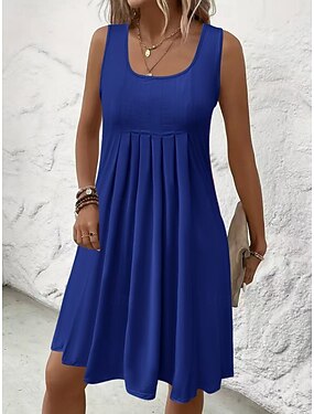 Femmes Mini Robe Robe d'été Occasionnel Quotidien Coupe Ample Uni Sans manches Col en U Noir Bleu Roi Violet Vert Été