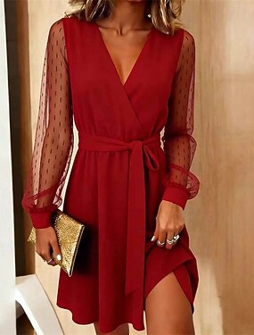 Femmes Mini Robe Robe en Velours Robe Vintage Robe de Bal Robe de Soirée Élégant Mode Moderne Soirée Cocktail Coupe régulière Uni manche longue Col en V Noir Été Printemps Automne