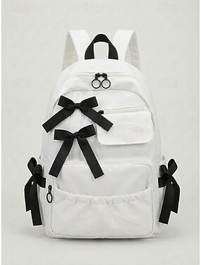 Sac à dos en polyester pour femme, orné d'un nœud en ruban, disponible en plusieurs couleurs, grande capacité avec de nombreuses poches, bretelles réglables, idéal pour l'école primaire &rentrée