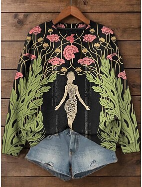 Femmes Sweatshirt Pull Fleuri Graphique Occasionnel manche longue Col ras du cou Hauts Réguliers Occasionnel Rue Tenue Quotidienne Rose Claire Violet Vert Printemps Hiver