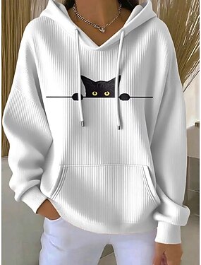 Femmes Sweatshirt Pull Imprimé Graphique Animal Chat Occasionnel manche longue Col ras du cou Hauts Réguliers Occasionnel Rue Fête Rose Claire Gris foncé Marron Bleu de minuit Café Printemps Automne