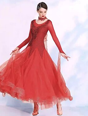 Danse de Salon Robe Broderie Fantaisie Cristaux / Stras Femme Utilisation Entraînement manche longue Maille Spandex Organza