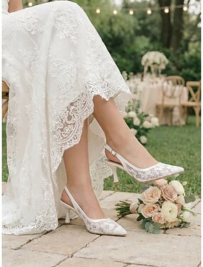 Femmes Mariage dans un jardin Mariage Talon épais Stiletto Bout Pointu Élégant Dentelle Mocassin Blanche