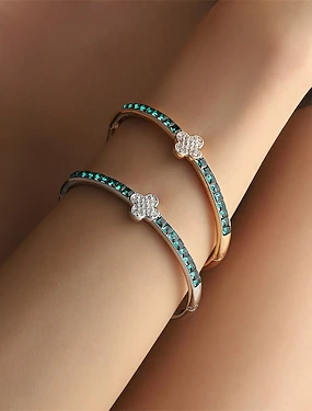 Bracelet Classique Zircon Trèfle Élégant Personnalisé Luxe Tendance Bracelet Bijoux Argent Doré Rond pour Mariage Soirée Fiançailles Bal de promo