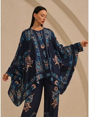 Chemisier femme mousseline de soie ethnique floral placement imprimé hawaïen surdimensionné col rond décontracté vacances printemps été automne