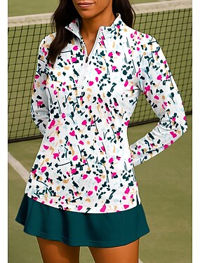 Femmes Floral Tache Chemise T-shirt de sport T-shirt POLO Chemise de tennis manche longue Fermeture éclair Floral UPF50+ Résistant aux UV Haute élasticité Évacuation de l'Humidité Respirant Tennis Le