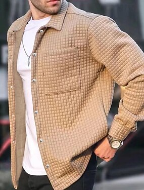 Homme Chemise gaufrée Veste-chemise Veste d'Hiver Uni Vacances Tenue quotidienne Noir Blanche Kaki Gris manche longue Revers Automne Hiver Vêtement Tenue Avec Poches