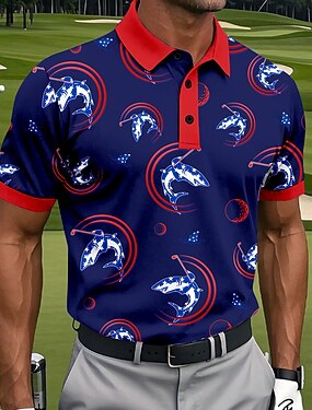 Homme Requin Golf Polos de Sport Manche Courte Polos Chemises à Col Occasionnel Athleisure Boutons Printemps & Été Bleu
