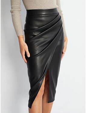 Femmes Élégant Mode Midi Taille haute Jupes Uni Froncé Fendu Non Elastique Quotidien Rue Rouge vin Noir Marron Beige Printemps