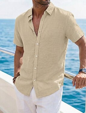 Homme Chemise en lin Chemise d'été Tenue de plage Chemise Boutonnée Uni Occasionnel Vacances Noir Blanche Rose Claire Vert Manche Courte Col Rabattu Été Vêtement Tenue Pur