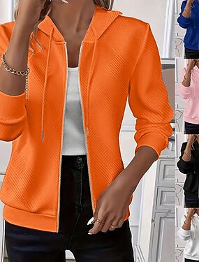 Femmes Pull Fermeture éclair Uni Élégant Occasionnel manche longue À capuche Hauts Réguliers Fête Bleu Noir Blanche Rose Claire Orange Printemps Automne Hiver