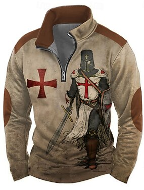 Homme Chevaliers Templiers Sweatshirt Occasionnel Vintage Rétro manche longue Col haut Vacances Vêtements de rue Bleu Vert Kaki Gris Fermeture éclair Quart de zip Automne Hiver Designer S M L XL XXL