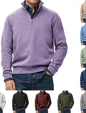 Homme Sweat-shirt Pull Sweat-shirt quart de fermeture éclair Rouge vin Noir Vert Véronèse bleu marine Bleu Roi Col montant Uni Quart de zip Sport & Loisir Occasionnel Quotidien ancien Streetwear