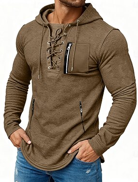 Homme T-shirt Chemise à Manches Longues manche longue À capuche Printemps & Automne Toutes saisons Couleur Unie Mode Designer Basique À lacets Poche à Fermeture Éclair Vacances Rue Occasionnel Gris