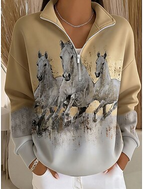 Femmes Sweatshirt Pull Fermeture éclair Graphique Animal Occasionnel manche longue Demi-zip Hauts Réguliers Occasionnel Tenue Quotidienne Fête Bleu Rose Claire Kaki Automne