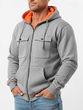 Homme Sweat à capuche Sweat à capuche zippé intégral Sweat à capuche en polaire Sweat à capuche tactique Gris Clair Gris foncé À capuche Uni Fermeture éclair Bloc de Couleur Occasionnel Quotidien
